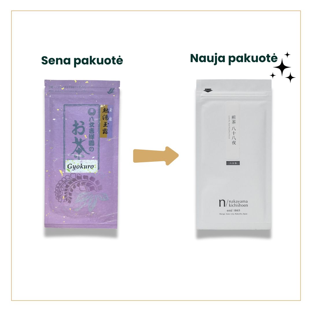 Siūlome paragauti rūšinę gyokuro Yamecha (八女茶), pažodžiui verčiant į lietuvių kalbą „aštuonių moterų arbata“) žalią arbatą. Yamecha yra vertinama kaip pati geriausia rūšinė žalia arbata visoje Japonijoje. Pastaroji arbata yra auginama Yame regione, Fukuoka prefektūroje, kuri yra pietinėje Japonijos Kyushu saloje.